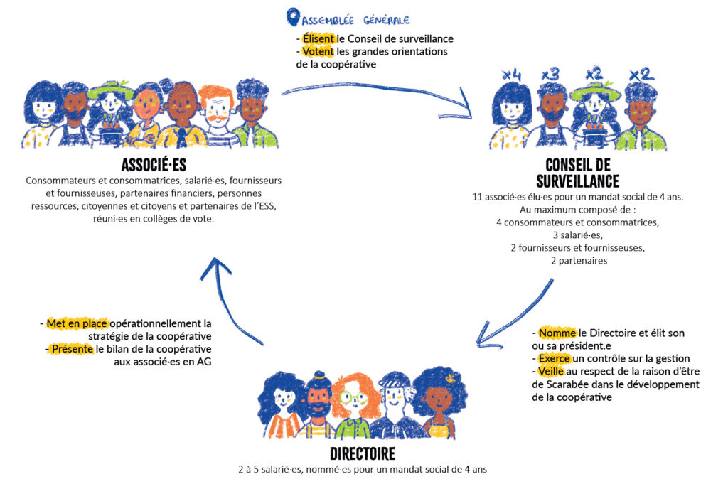 La transformation de Scarabée en SCIC a permis d’associer aux décisions, non seulement les consommatrices et consommateurs historiquement aux commandes, mais également les salarié.es, les fournisseurs et les partenaires de la coopérative.